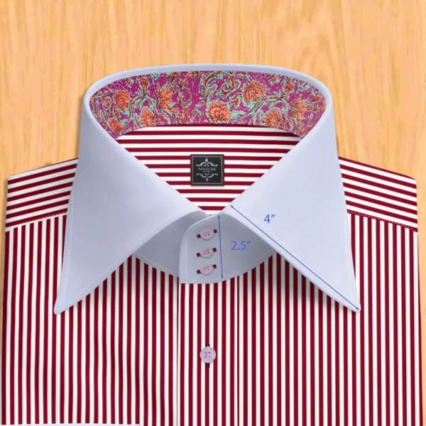 Burgundy striped shirt High Collar Dress Shirt (100% Giza Cotton) – Floral Contrast Inside