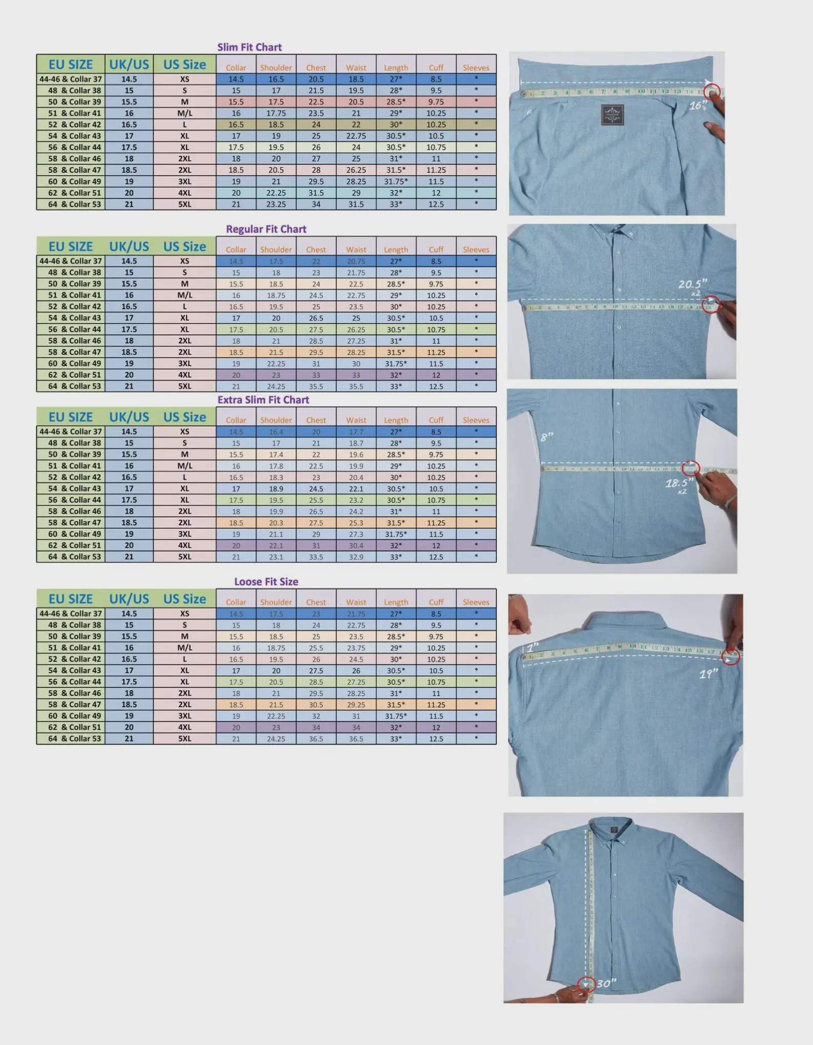 - Fit Options: Slim fit, regular fit, trim fit, loose fit