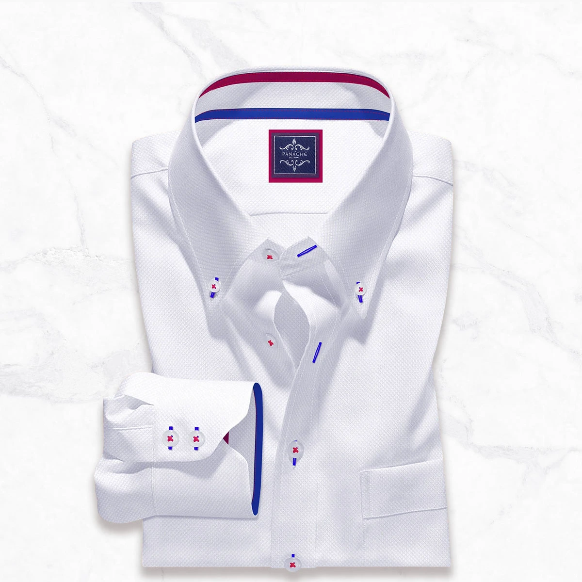 When men ask us at Panache Bespoke which piece should be their first choice, our answer is simple: start with the business casual button down shirts. This white Royal Oxford version is made to carry you from the office desk to a late-night dinner without a single doubt.